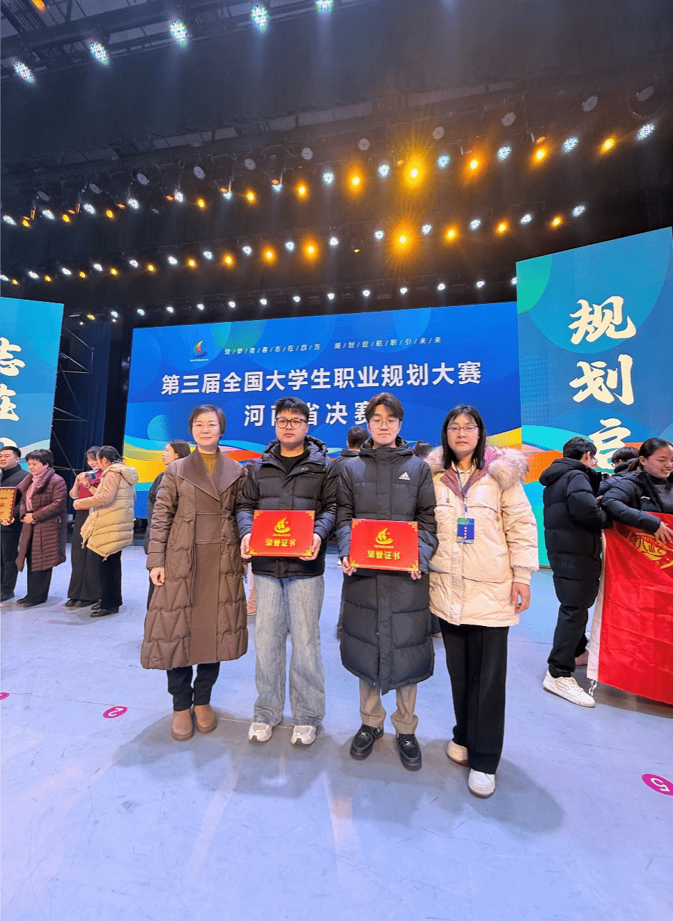 贾赛阳同学摘得高教组就业赛道金奖,赵睿琦同学斩获高教组成长赛道金奖,首次实现此赛事双赛道省级金奖的历史性突破,以硬核实力书写了青年学子锚定职业梦想、逐光奋进的青春答卷。